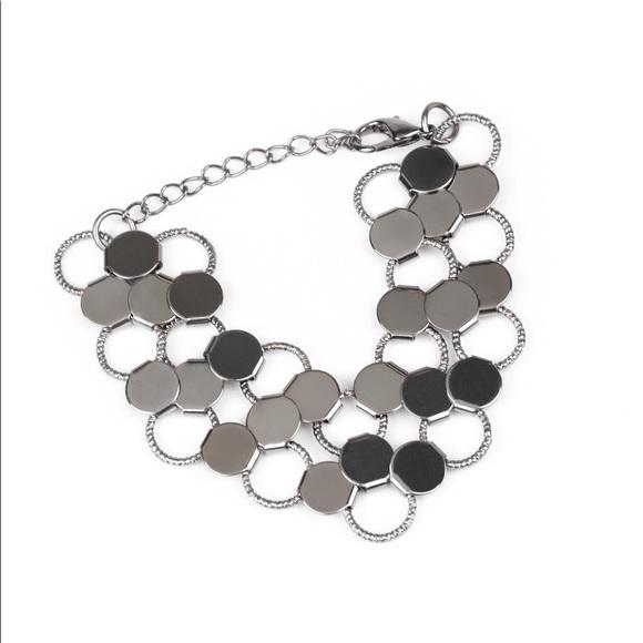Brushed in a high-sheen finish, vine-like filigree climbs glistening silver frames. Infused with dainty silver beads, the elegant frames are threaded along stretchy bands, creating a refined look around the wrist.