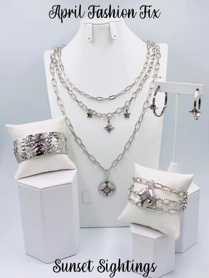 A three-dimensional silver star, dotted with a single dainty white rhinestone, is affixed to the front of a curved silver bar, forming an out-of-this-world hoop earring. Hoop measures approximately 1½ inches.