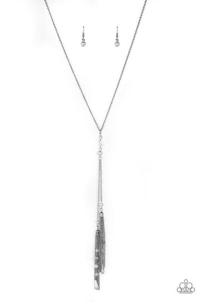 Dainty silver pearls and sparkling white crystal-like beads gives way to two shimmery silver chain tassels. Infused with ornate silver beads, strands of matching beads trickle down the tassels for a refined flair. Features an adjustable clasp closure.